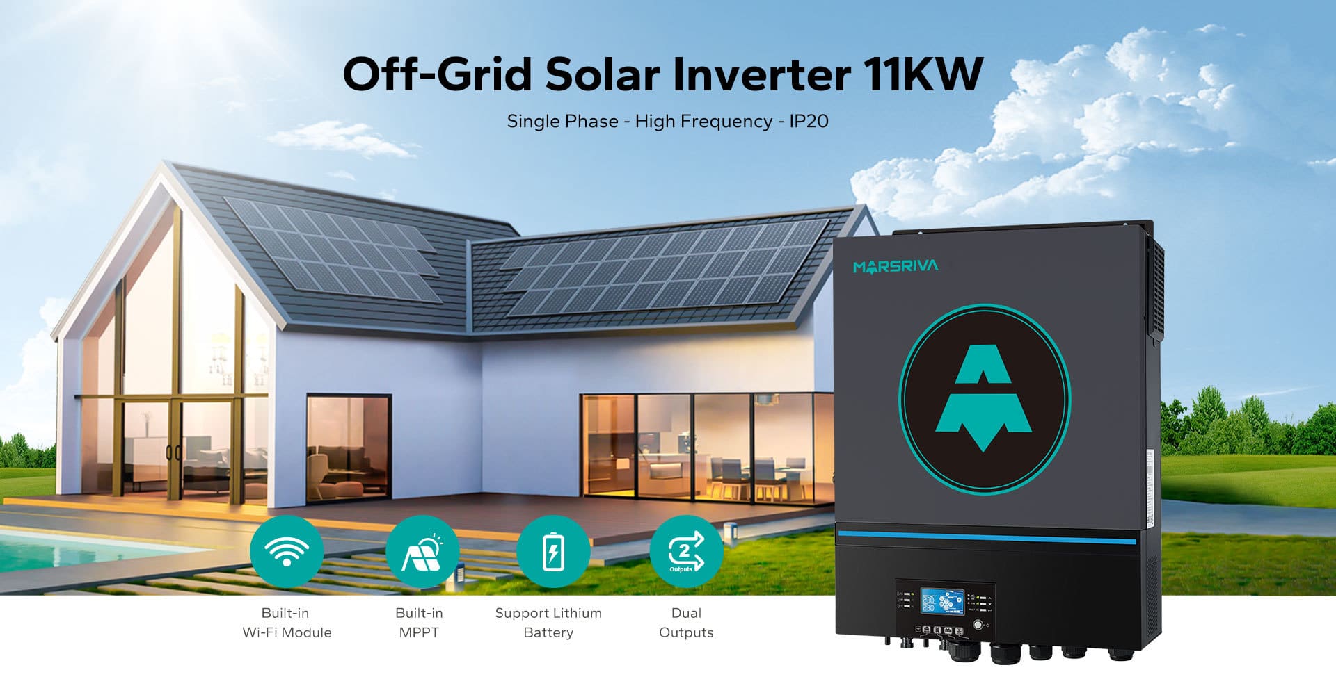 The MR-SPF11000M TWIN (Version 1) is a powerful, high-frequency hybrid inverter designed for residential and light commercial energy systems. With advanced dual-output functionality, high PV input capacity, and intelligent monitoring, this inverter delivers efficient, scalable, and reliable power management.